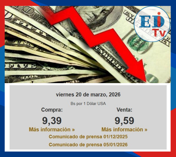 Dólar paralelo a Bs 9,60: a solo un centavo del valor referencial del BCB (14:45) 20 mar 2026, 19:04 ... Redirecting to full article...