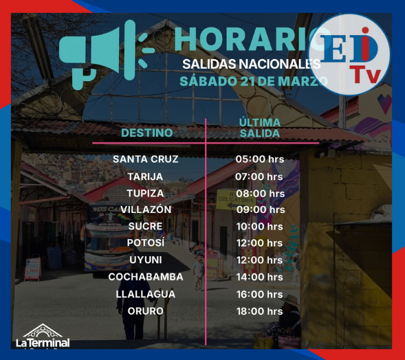 Terminal de La Paz: Conozca los horarios límite de salida para este sábado (11:53) 20 mar 2026, 16:04 ... Redirecting to full article...