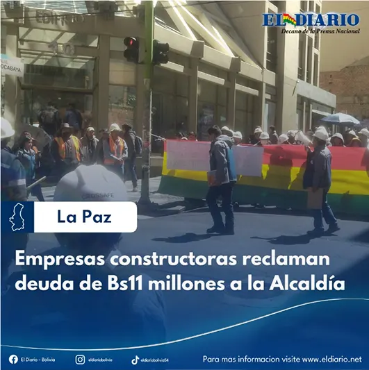 Representantes de más de un centenar de pequeñas y medianas empresas constructoras bloquean el centro paceño exigiendo el pago de Bs 11 millones que la Alcaldía de La Paz les adeudaría por diferentes obras realizadas a lo largo de la gestión de Iván Arias. En caso de no recibir el pago, advierten qu...