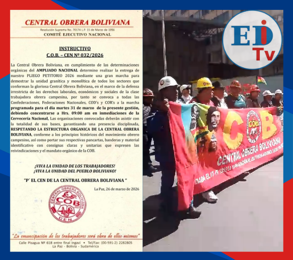 La Paz: Marcha de la COB hacia la Casa Grande del Pueblo colapsa el centro (11:18) 31 mar 2026, 15:44 ... Redirecting to full article...