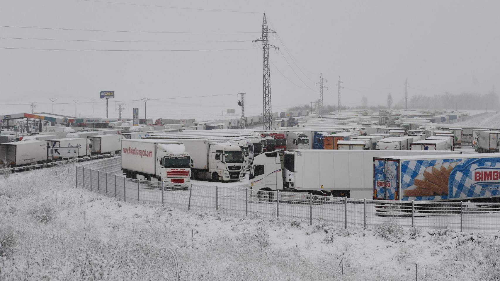 La nieve complica el tráfico en las carreteras de Castilla y León: camiones embolsados y restricciones