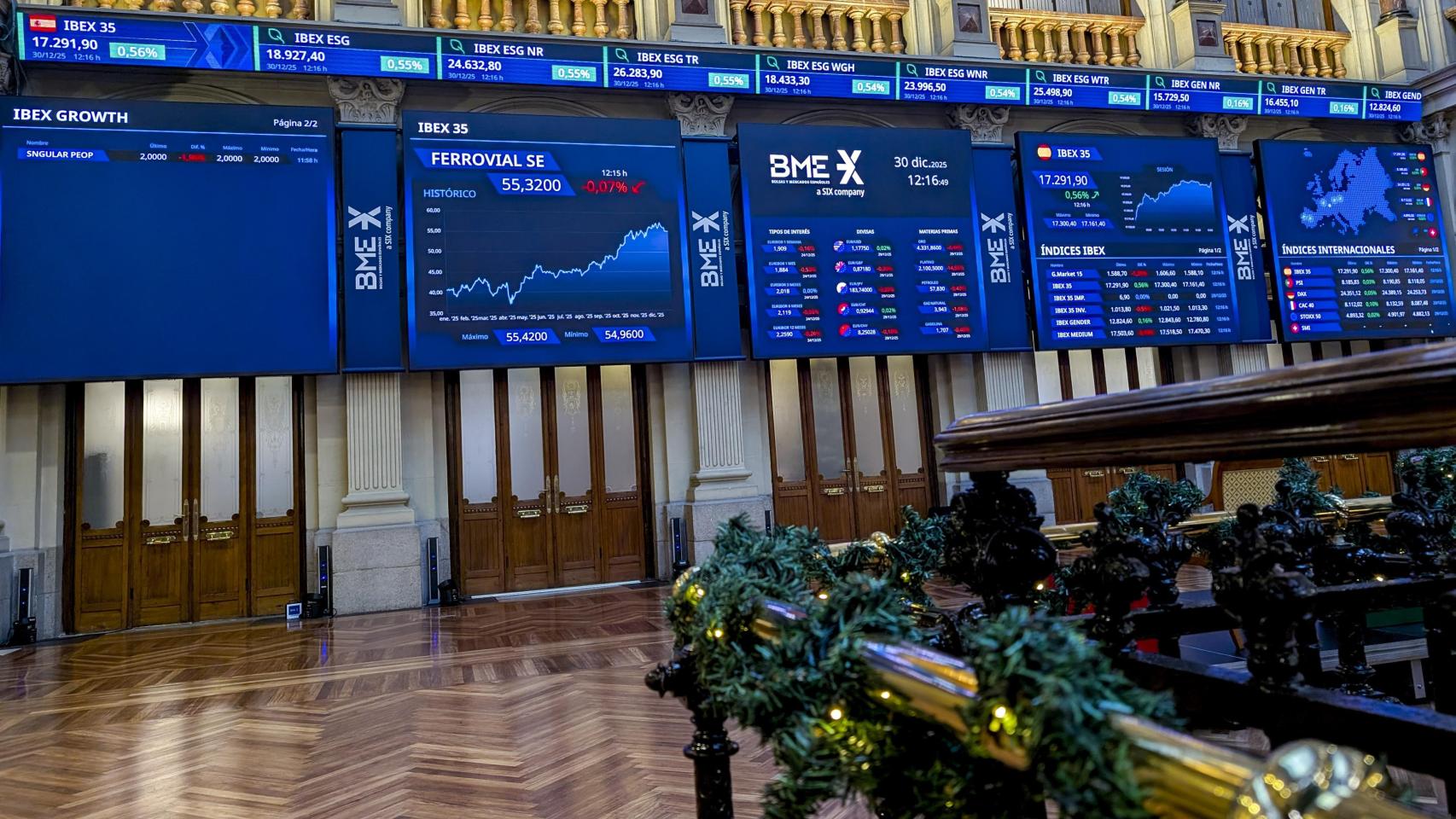 El Ibex 35 sube casi un 50% en el segundo mejor año de su historia y marca máximos por encima de los 17.300 puntos