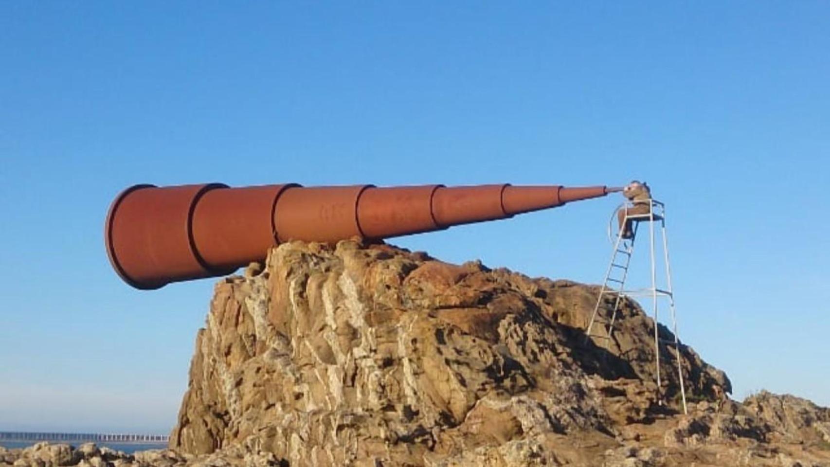 El Monumento al Voyeur de Arteixo (A Coruña) pide un cambio de escalera: el óxido se la come
