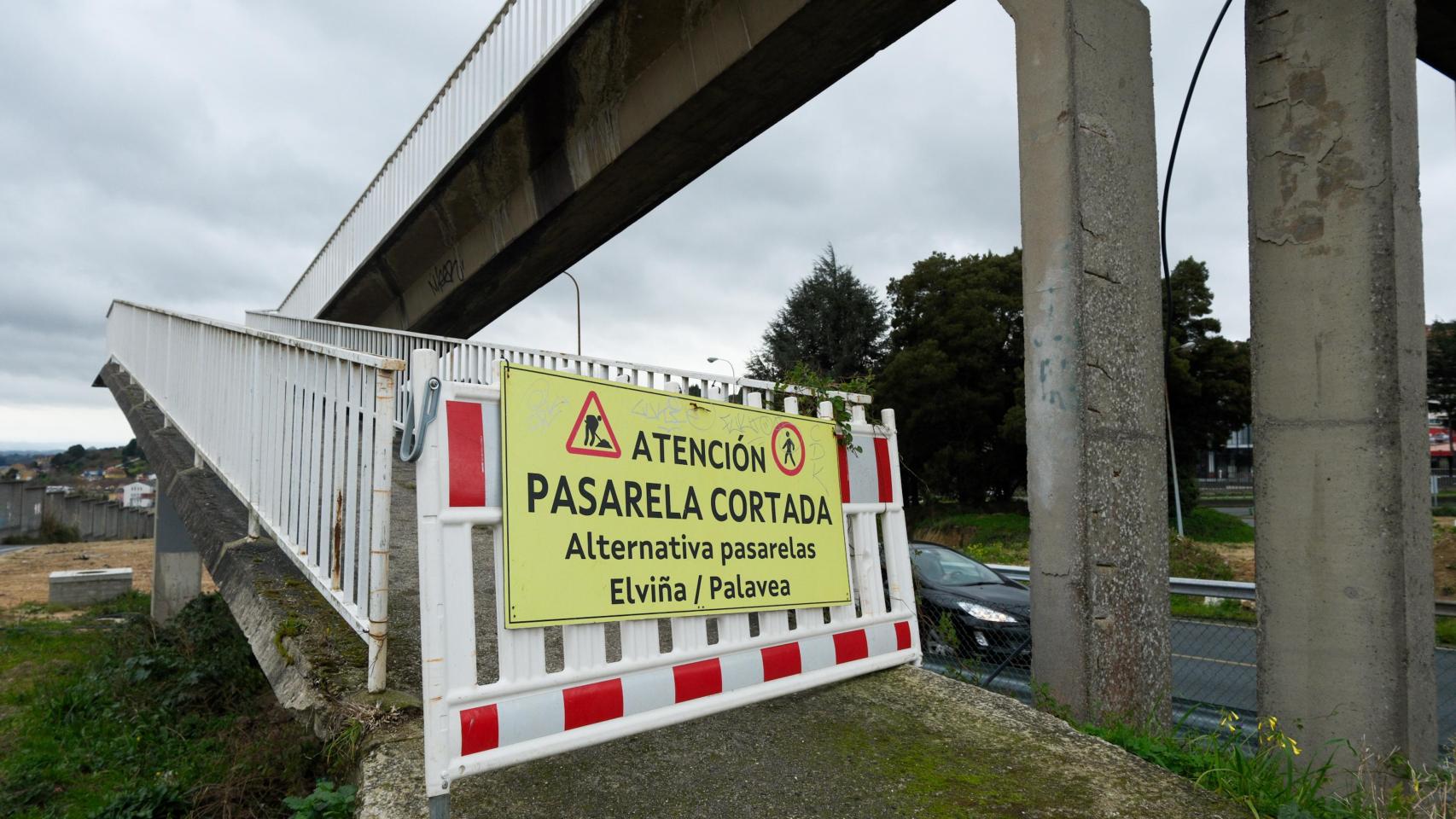 La pasarela de A Coruña por la que debía haber cruzado el hombre que murió atropellado en la AP-9 lleva un año cerrada