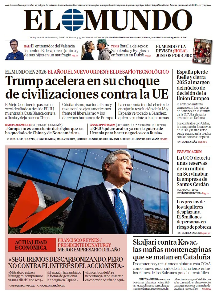Portada de EL MUNDO del domingo 28 de diciembre de 2025
