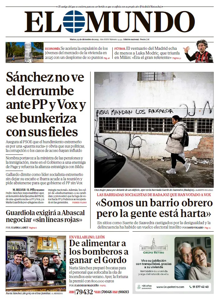 Portada de EL MUNDO del martes 23 de diciembre de 2025