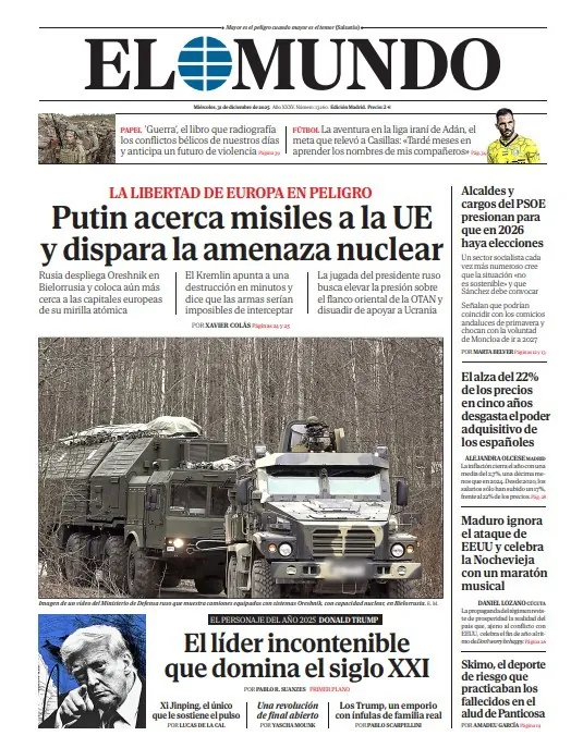 Portada de EL MUNDO del miércoles 31 de diciembre de 2025. Disponible en Orbyt desde las 23.30h. y cada día en tu quiosco, la mejor información siempre con EL MUNDO. Suscríbete aquí a PREMIUM y tendrás acceso ilimitado a todo el contenido...