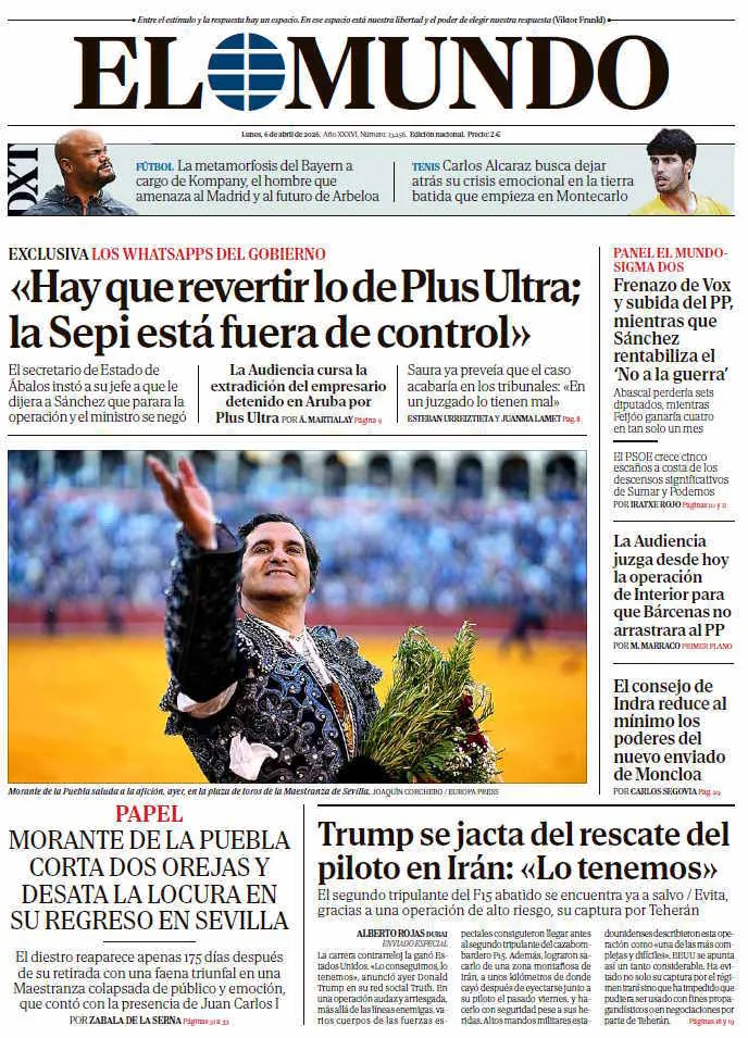 Portada de EL MUNDO del lunes 6 de abril de 2026