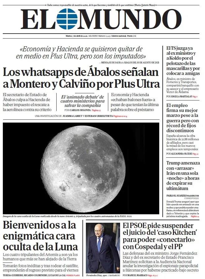 Portada de EL MUNDO del martes 7 de abril de 2026