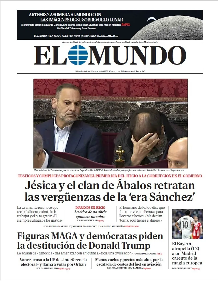 Portada de EL MUNDO del miércoles 8 de abril de 2026. Disponible en Orbyt desde las 23.30h. y cada día en tu quiosco, la mejor información siempre con EL MUNDO. Suscríbete aquí a PREMIUM y tendrás acceso ilimitado a todo el contenido...