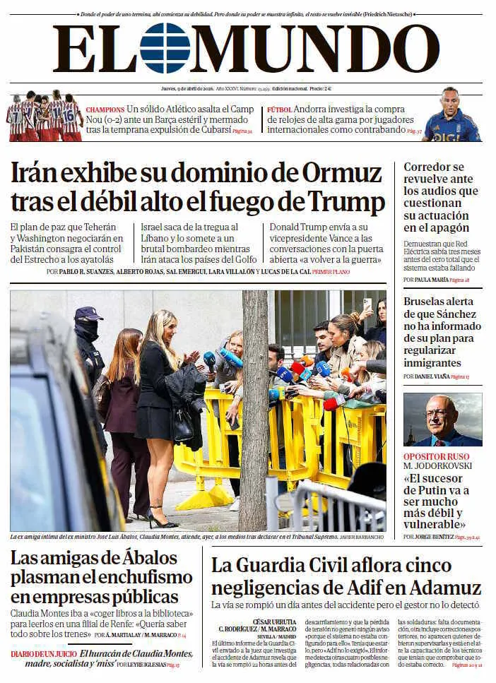 Portada de EL MUNDO del jueves 9 de abril de 2026