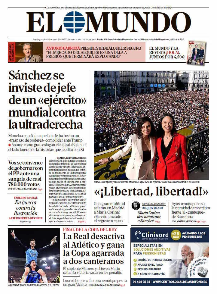Portada de EL MUNDO del domingo 19 de abril de 2026
