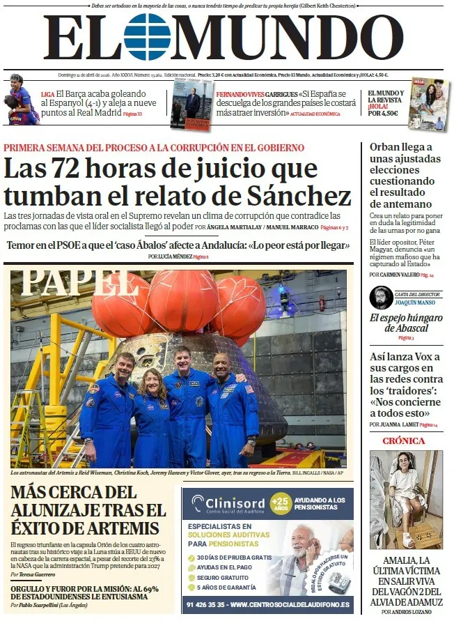 Portada de EL MUNDO del domingo 12 de abril de 2026