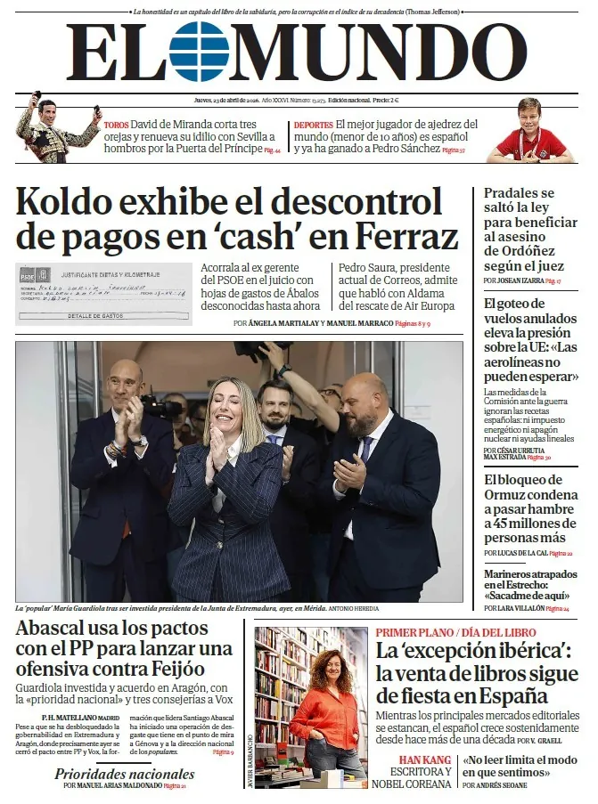 Portada de EL MUNDO del jueves 23 de abril de 2026
