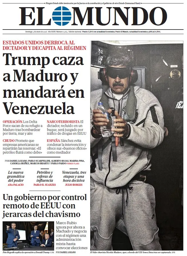 Portada de EL MUNDO del domingo 4 de enero de 2026. Disponible en Orbyt desde las 23.30h. y cada día en tu quiosco, la mejor información siempre con EL MUNDO. Suscríbete aquí a PREMIUM y tendrás acceso ilimitado a todo el contenido...