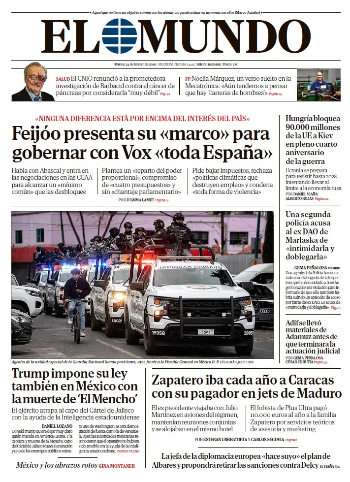 Portada de EL MUNDO del martes 24 de febrero de 2026. Disponible en Orbyt desde las 23.30h. y cada día en tu quiosco, la mejor información siempre con EL MUNDO. Suscríbete aquí a PREMIUM y tendrás acceso ilimitado a todo el contenido...