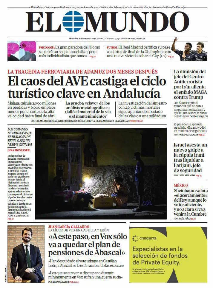 Portada de EL MUNDO del miércoles 18 de marzo de 2026