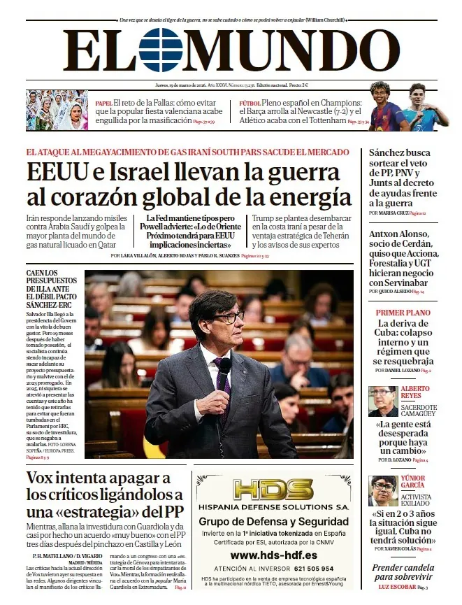 Portada de EL MUNDO del jueves 19 de marzo de 2026
