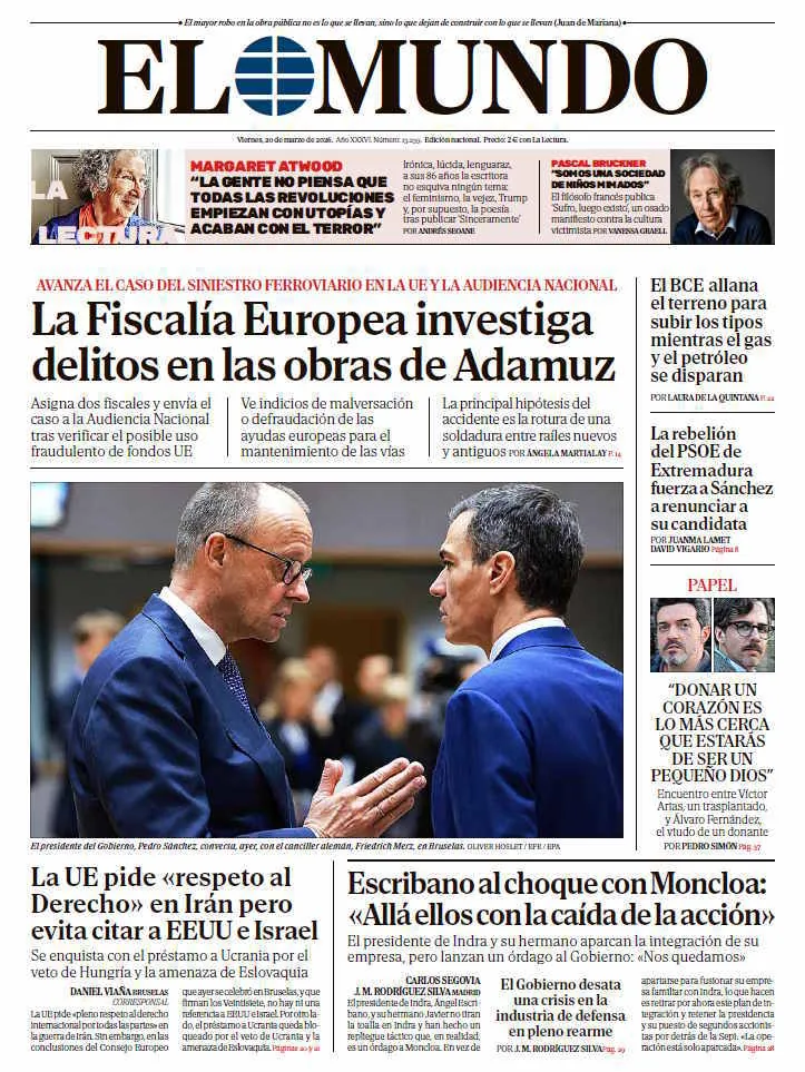 Portada de EL MUNDO del viernes 20 de marzo de 2026