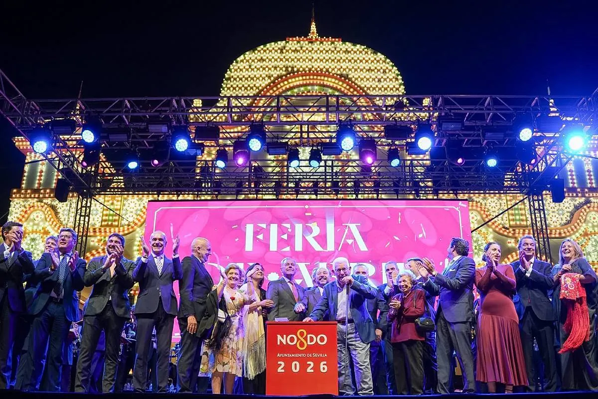 El 'alumbrado' de la portada enciende Sevilla con más de 280.000 bombillas e inicia siete días consecutivos de celebración en el Real de la Feria