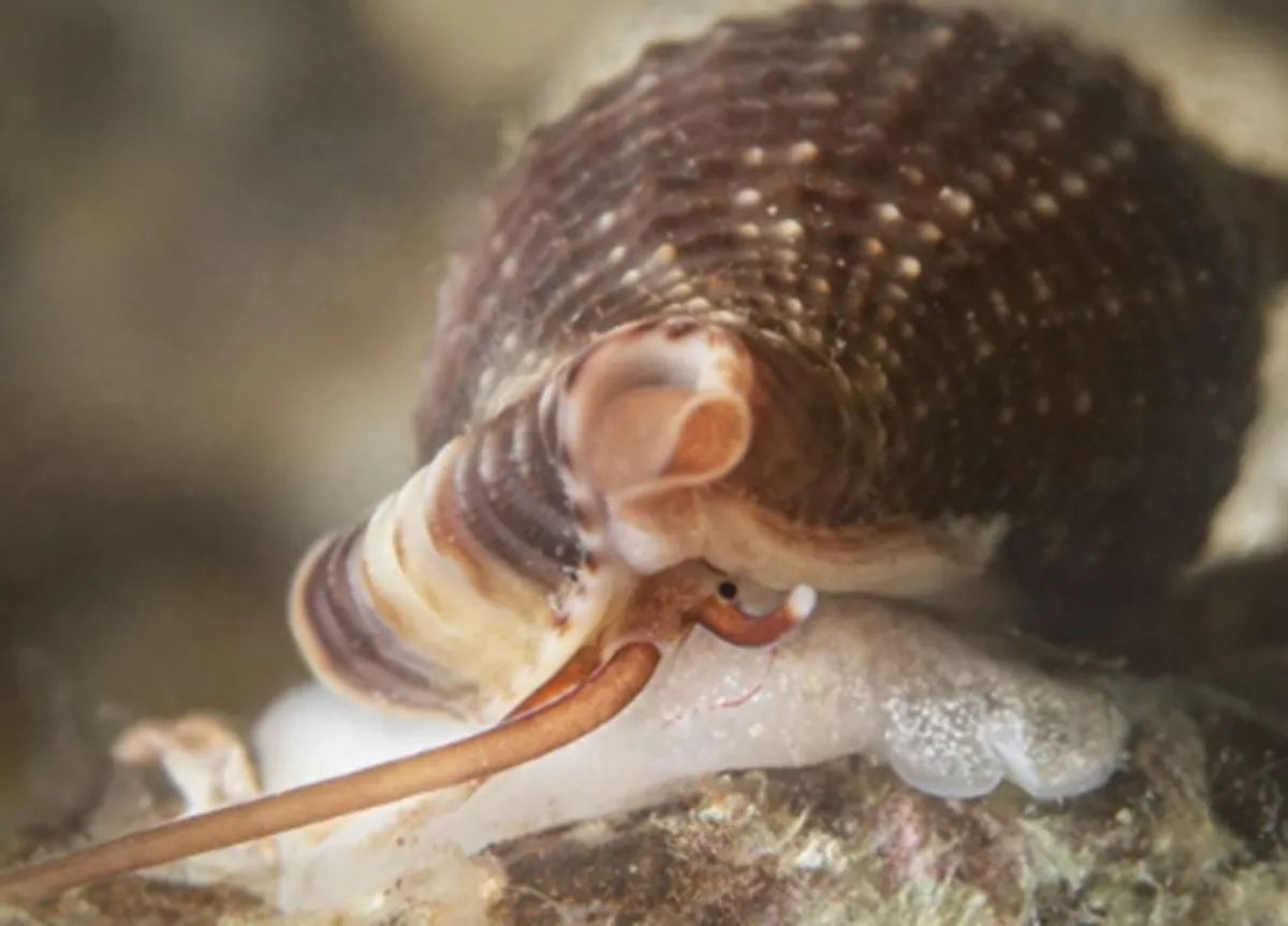 El caracol vampiro que succiona la sangre de los peces dormidos, candidato a Molusco del Año
