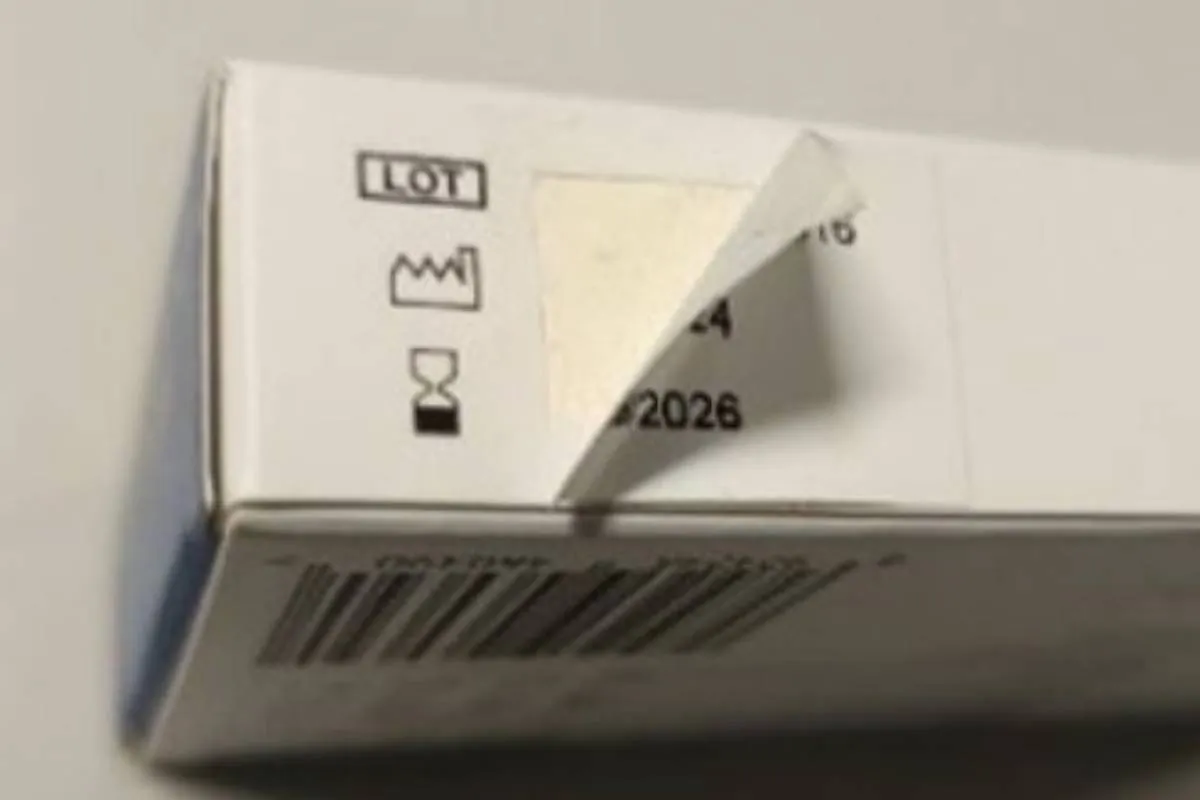Los productos falsificados pueden identificarse porque se ha adherido una etiqueta con la información modificada relativa al número de lote (FCO24090516), la fecha de fabricación (09/2024) y la fecha de caducidad (09/2026)...