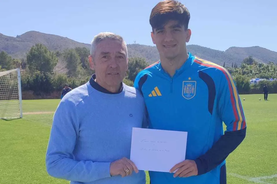 El hijo del maestro, concentrado con la Selección Española sub-19, recibe al Círculo Taurino de la ciudad, que le entrega fotografías de su padre en las tres tardes que hizo en paseíllo en esta plaza, cerrada desde 2017 y a la espera de que el nuevo proyecto de un coso multiusos incluya la celebraci...