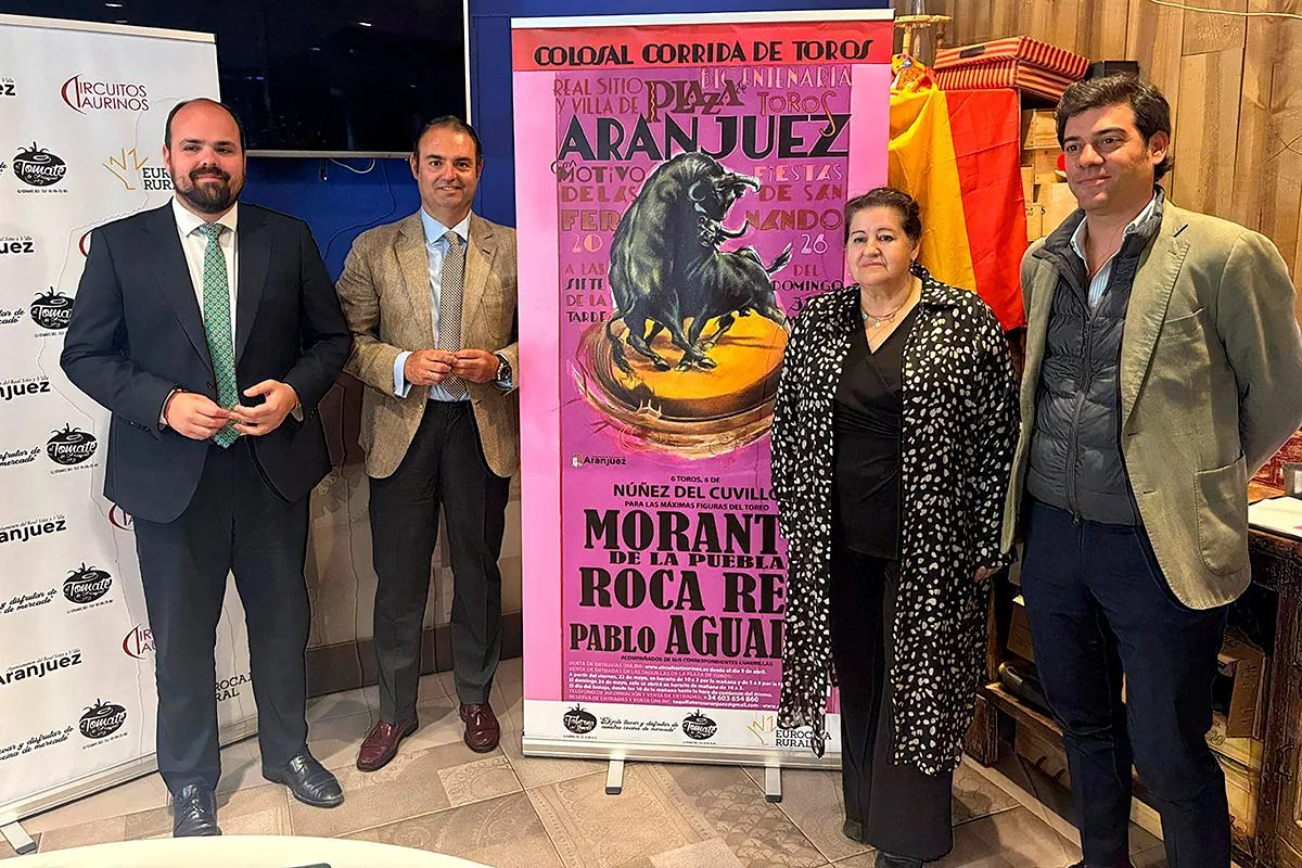 La empresa Circuitos Taurinos ha presentado este mediodía en el restaurante El Tomate de Aranjuez el cartel de la tradicional Corrida de Toros que conmemora la Festividad de San Fernando en el Real Sitio y Villa, uno de los festejos más clásicos y asolerados de la temporada, que este año tendrá luga...