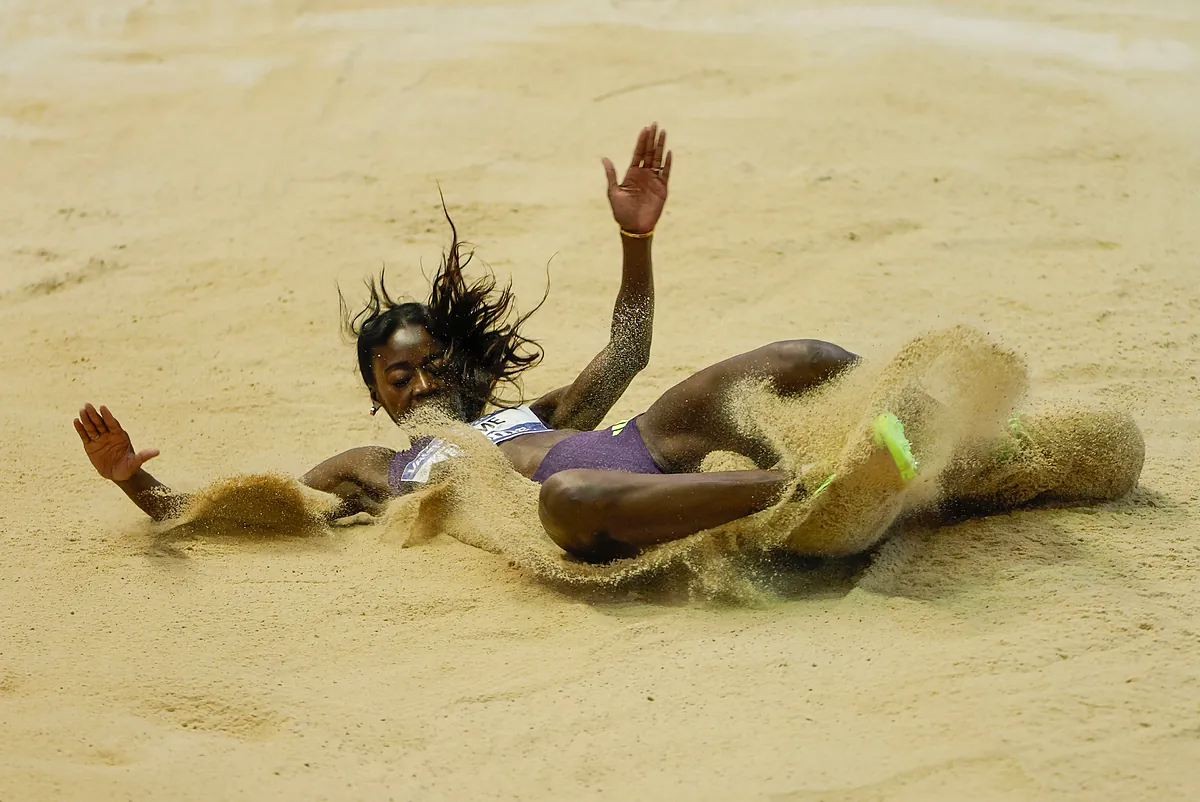 Fátima Diamé, campeona de longitud en su último intento en un día en el que se confirmó la baja de Jordan Díaz