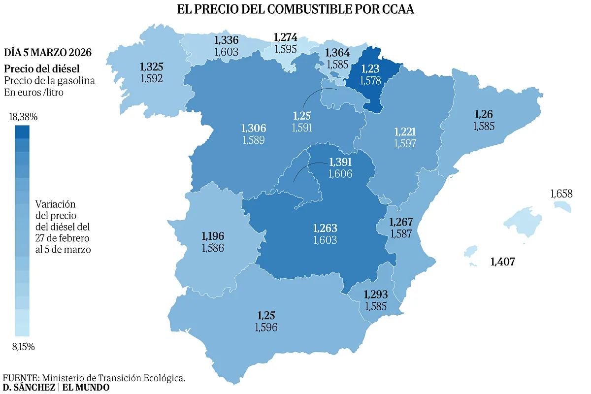 La gasolina sube un 7% y el diésel se dispara un 12,5% en una semana por la guerra en Oriente Próximo