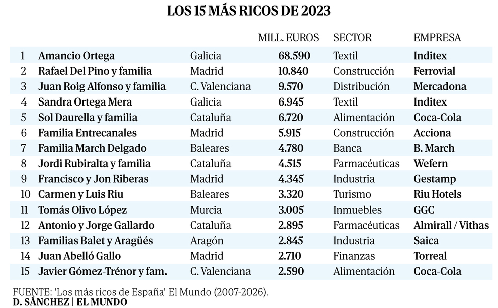 En plena burbuja del ladrillo, la primera lista de ricos que se elaboró en España nació plagada de constructores y, aunque Amancio Ortega ya ocupaba el primer puesto, aún era no un ultrarrico inalcanzable...