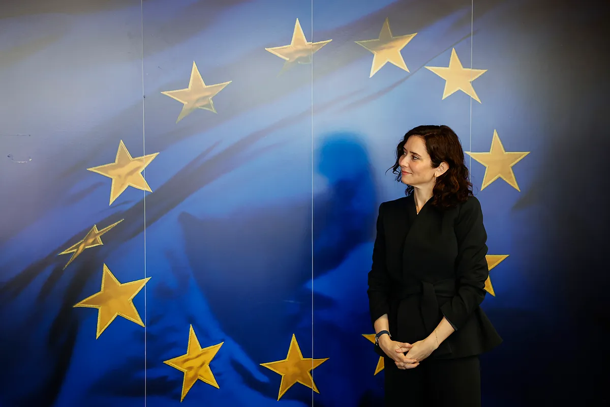 "Hoy es portada nacional que la tercera autoridad del país, la presidenta del Congreso de los Diputados, está vinculada a una de las muchas tramas de corrupción del gobierno", ha denunciado la presidenta de la Comunidad de Madrid en Bruselas...
