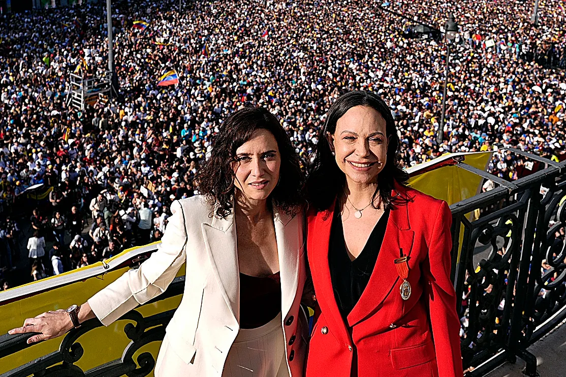 MM y Podemos rechazan los cánticos "racistas" en el acto de María Corina Machado en Sol y exigen a Ayuso que los condene