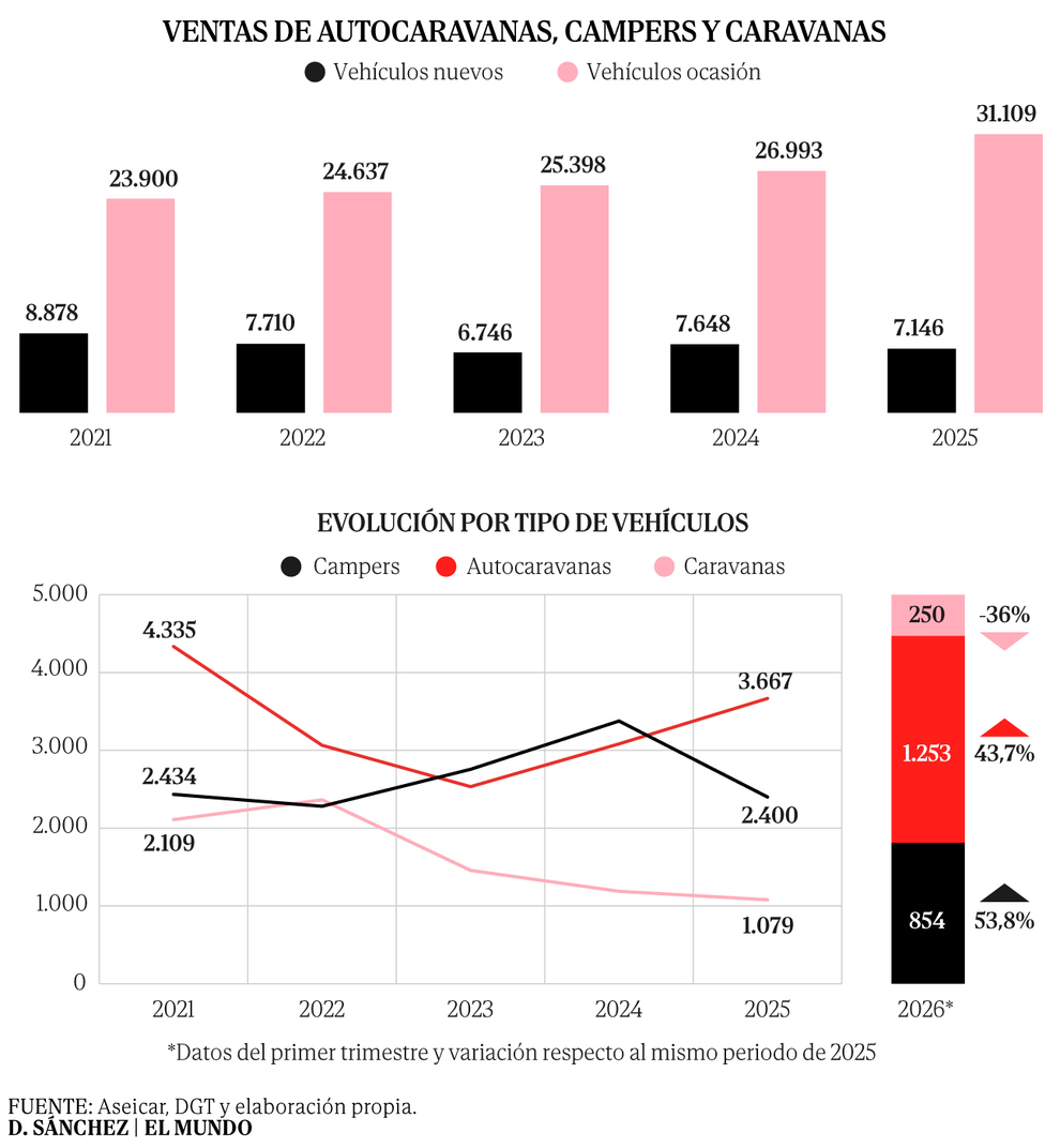 La menor depreciación de 'campers' y autocaravanas hace que el mercado de usados multiplique por 4,5 al de los nuevos