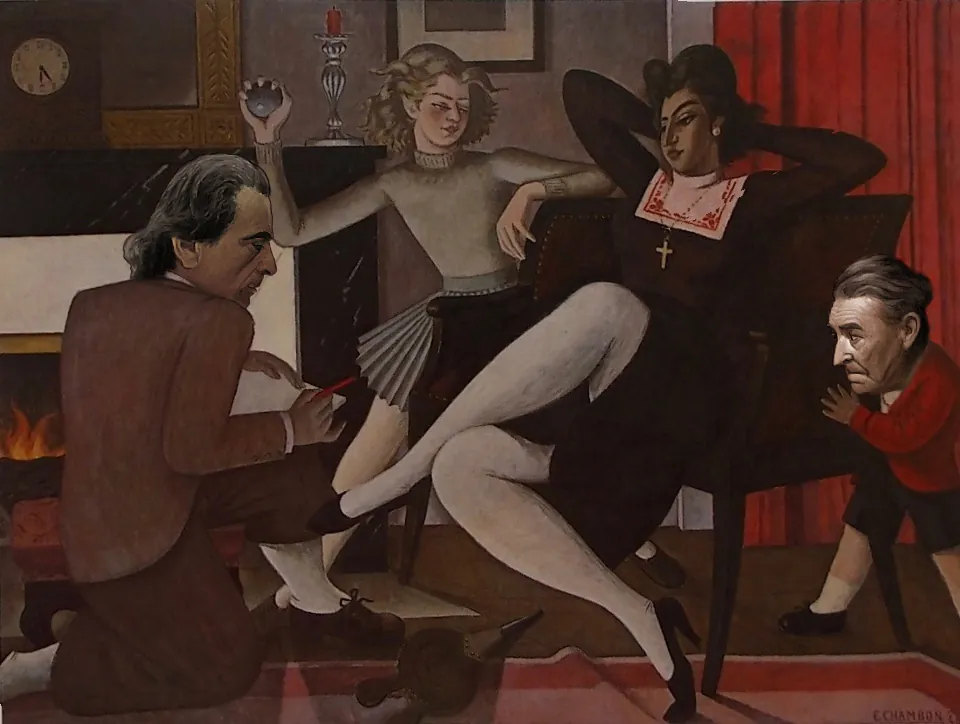 Para ilustrar el Jornal de anteayer hemos plagiado a Emile Chambon. En nuestra versión, tremenda señora cruza y descruza las piernas perezosa, como al descuido, pero conocedora del terremoto que provoca. A la derecha, en respetuoso silencio, Pla admira el gracioso vuelo de los piecitos, el giro de l...