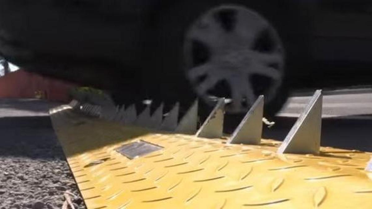 El polémico sistema, legal en terreno privado, pincha neumáticos a coches y motos que acceden por la salida, generando debate por su peligrosidad y dureza...