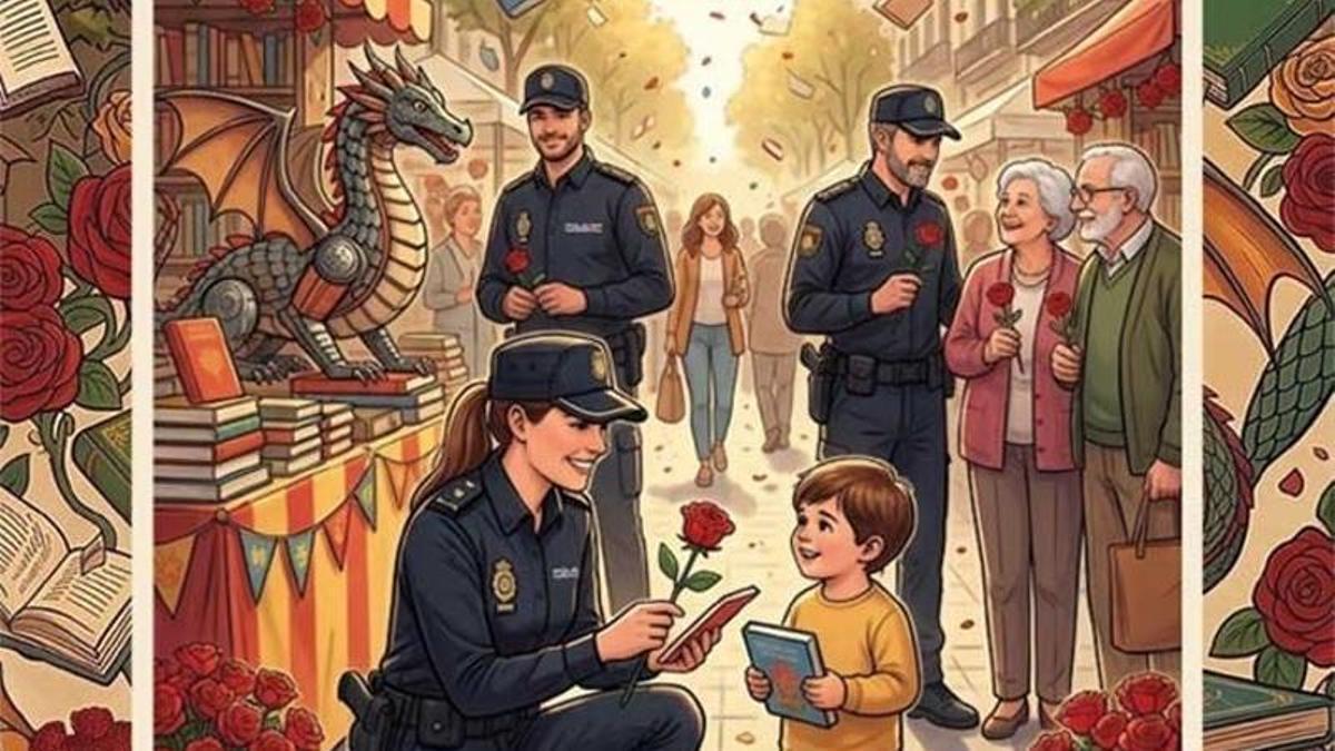 La Policía Nacional pone por primera vez una parada de libros en Sant Jordi