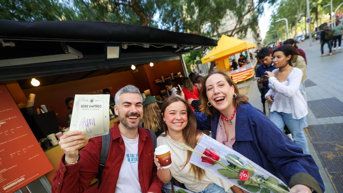 Un quiosco de Good News en la avenida Diagonal reúne desde primera hora a decenas de lectores atraídos por café, sorteos y el universo de Rebecca Yarros...
