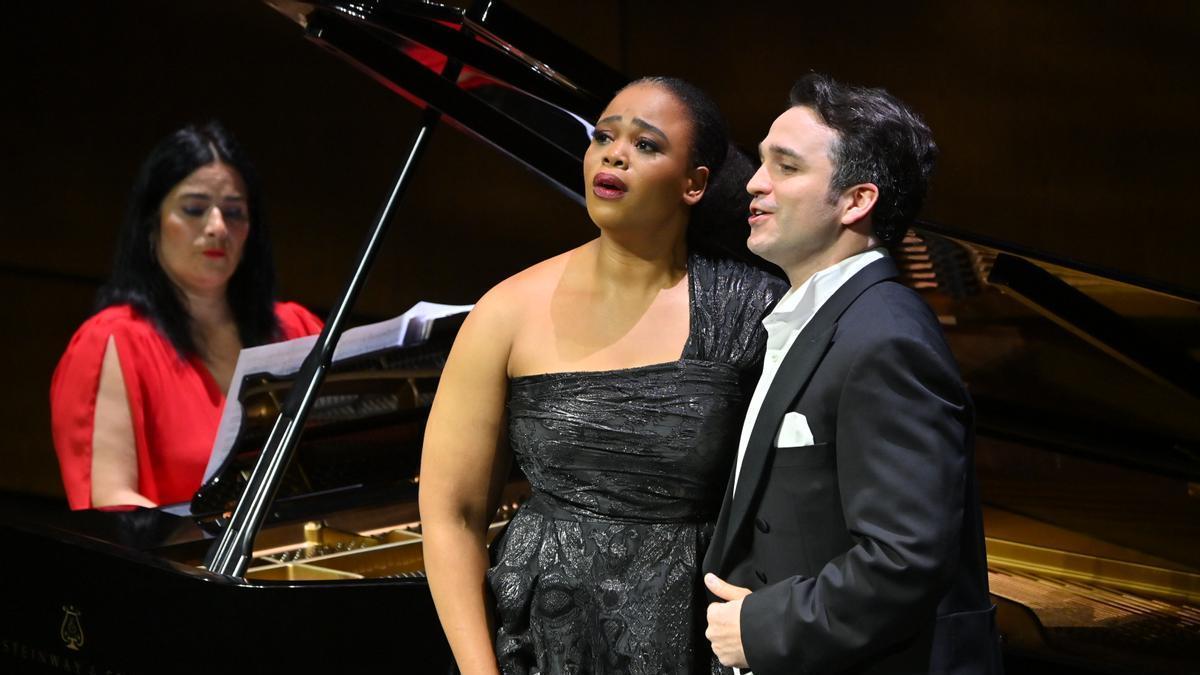 La soprano sudafricana y el tenor vasco ofrecen un aplaudido programa en una gala lírica en la que visitaron rincones de sus respectivos repertorios, contando con la complicidad de la pianista canaria Vanessa García Diepa...