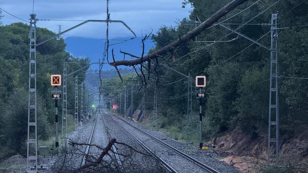 La caída de un árbol obliga a evacuar a 220 pasajeros de dos trenes e interrupir la circulación en la R11 entre Girona y Caldes de Malavella