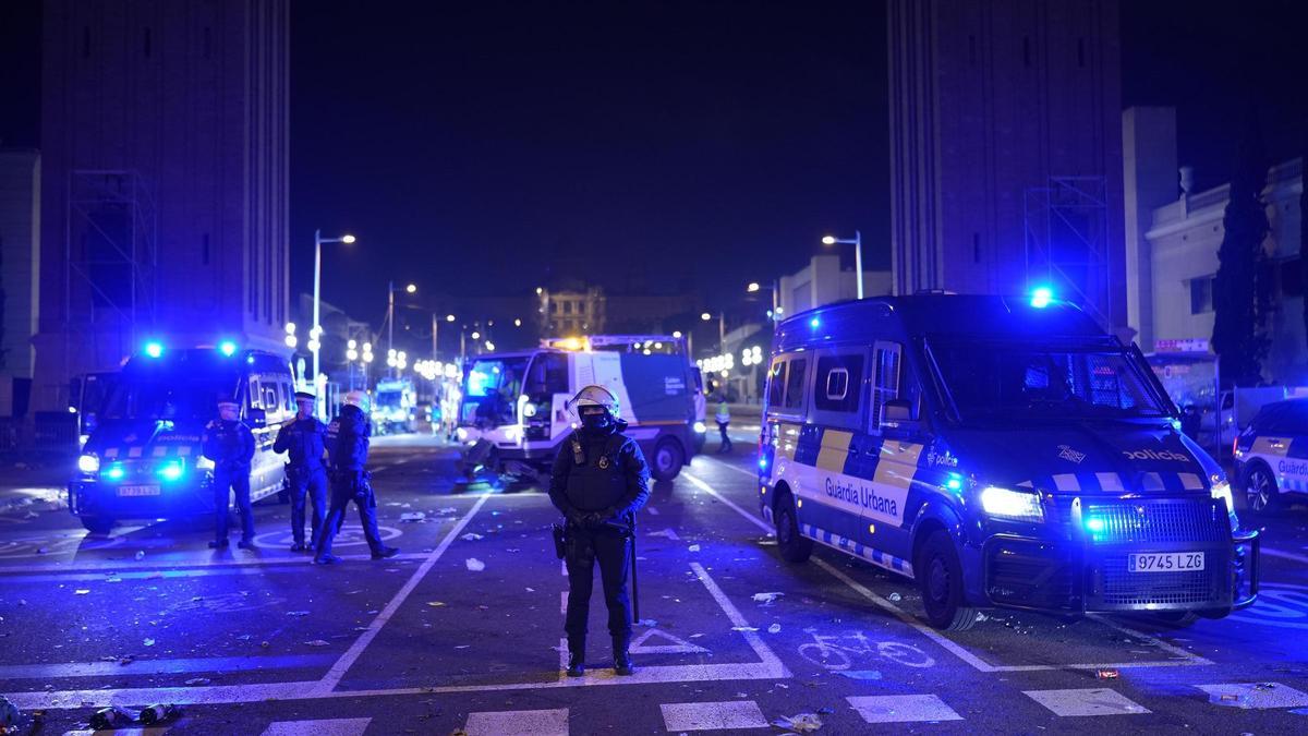Control policial con drones y detectores de metales en Maria Cristina para la noche de Fin de Año en Barcelona
