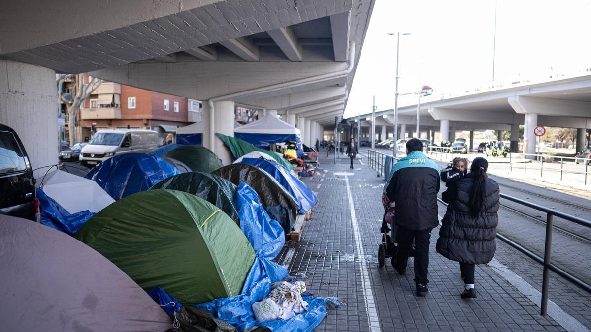 Unas cincuenta personas siguen acampadas bajo el puente de la C-31 en Badalona dos semanas después del desalojo del antiguo instituto...