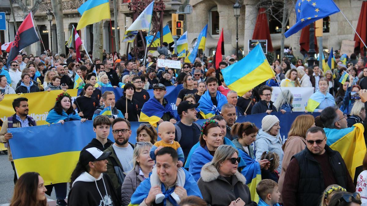 La comunidad ucraniana se manifiesta en Barcelona por los 4 años de la invasión y pide que el mundo no se olvide de la guerra