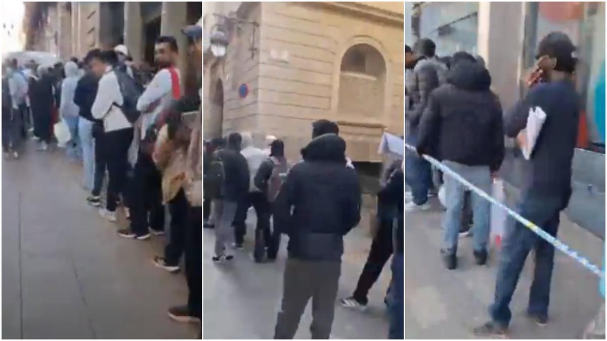 Cola inaudita de inmigrantes en Barcelona por la regularización: da toda la vuelta al ayuntamiento y casi llega a la Rambla