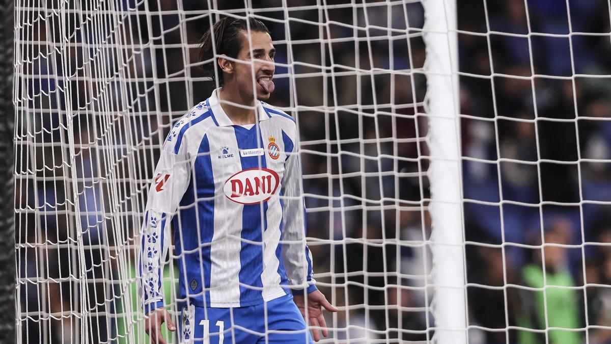 El delantero del Espanyol, que participó en el espacio humorístico Perico Que Vola, chutó contra un cartón que representaba a Joan Garcia....