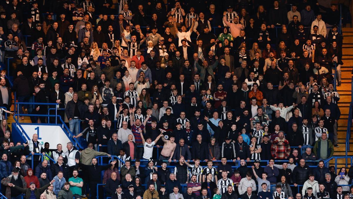 Los aficionados del Newcastle la lían en Barcelona: trepan por una palmera en el centro de la ciudad