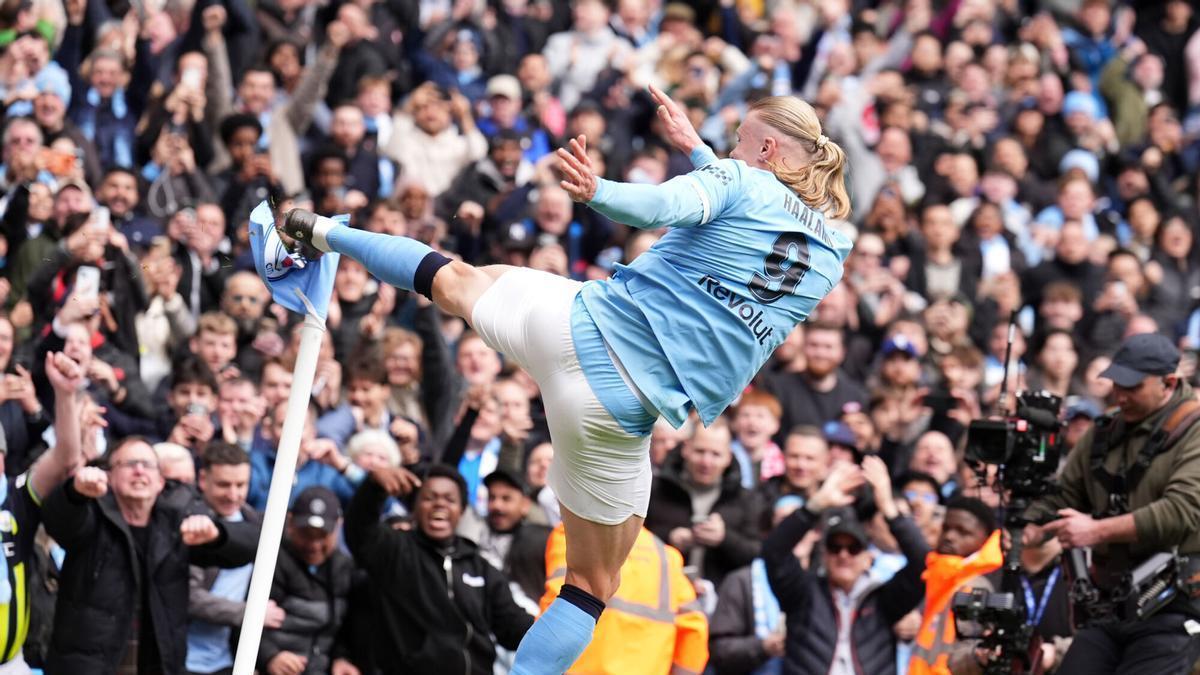 El astro noruego comandó el triunfo del bloque de Guardiola con tres tantos....