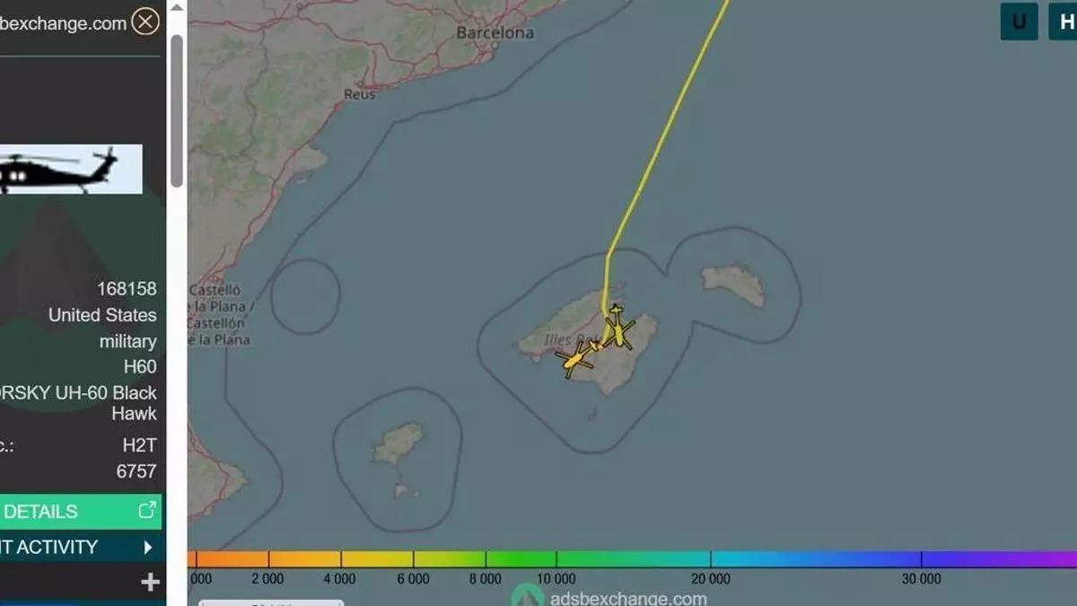 Dos helicópteros Black Hawk del Ejército de EEUU sobrevuelan Mallorca y otros dos aparatos recalan en Palma