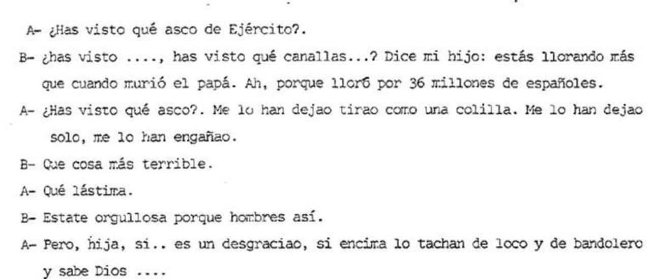 La llamada en la que la mujer de Tejero se queja de Milans del Bosch: "Le han dejado tirao como una colilla"