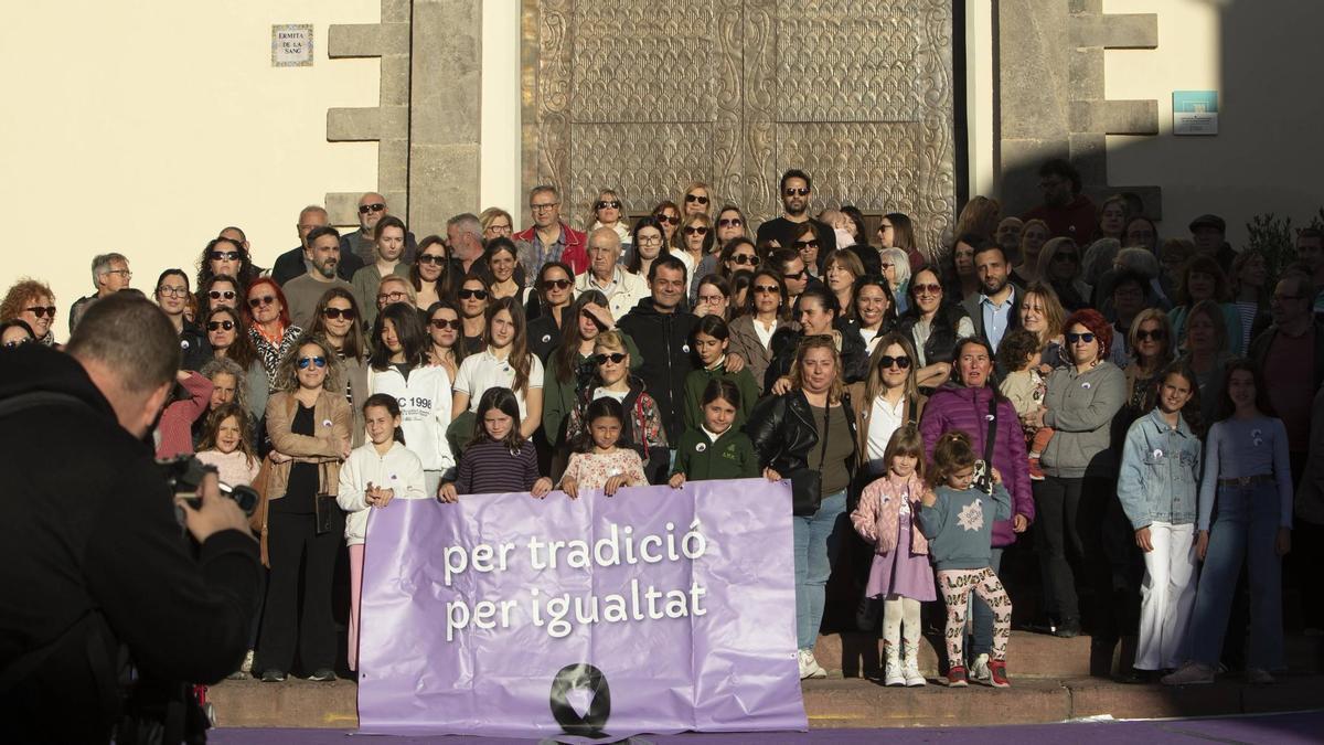 Un nutrido grupo, con madres e hijas, se concentró la tarde del domingo a las puertas de la ermita de la Sang para reclamar su inclusión en la fiesta sacra...